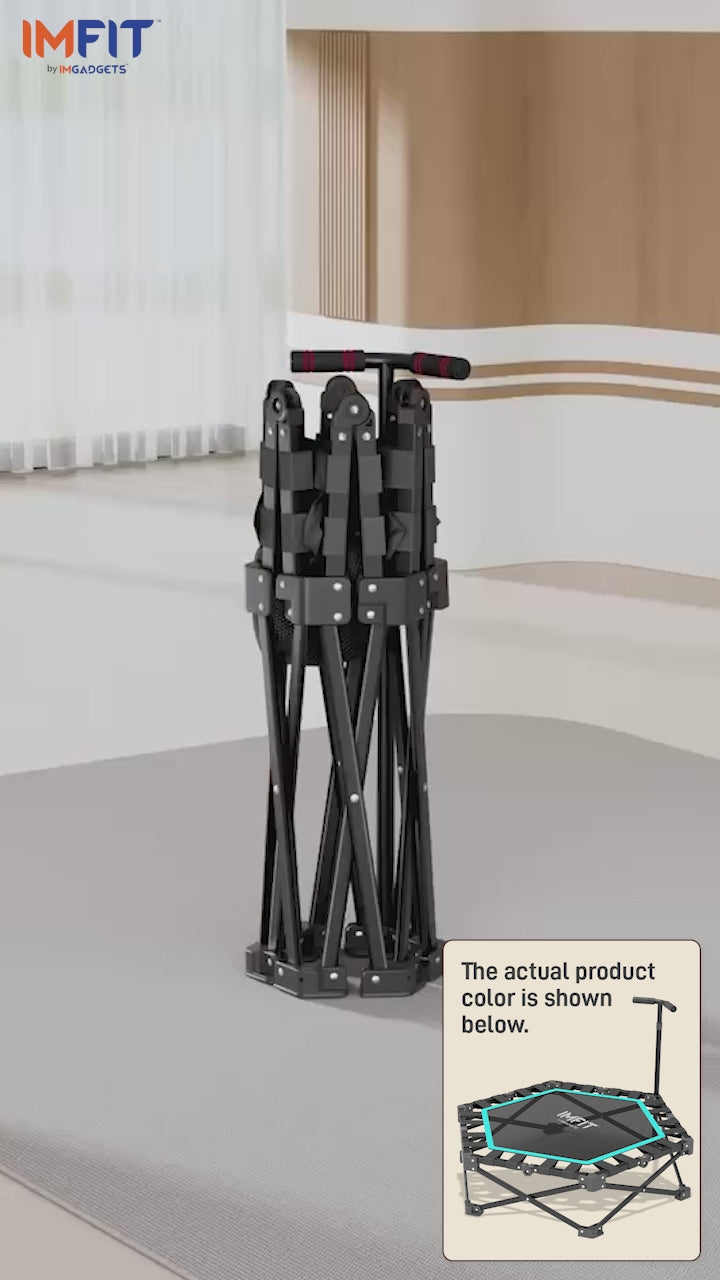 Trampoline de fitness pliable IMFIT 107 cm (42 po) | Capacité de charge : 150 kg (331 lb) | Rebond ultra-silencieux | Guidon réglable sur 3 niveaux | Conception pliable compacte | Exercice cardio complet à faible impact | Montage facile