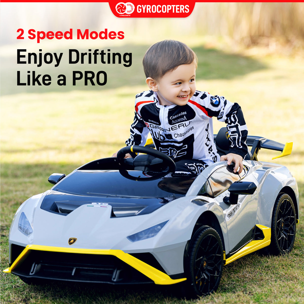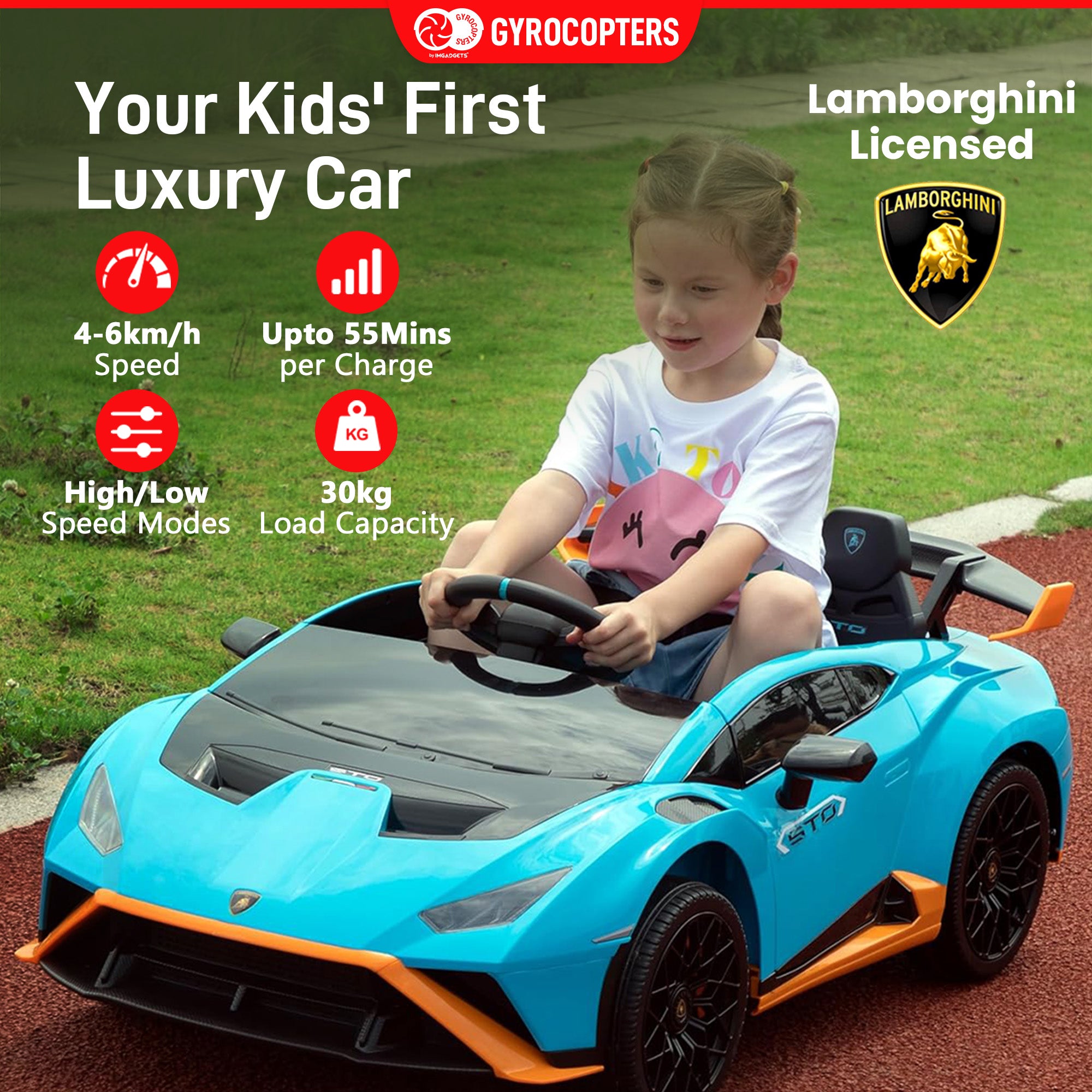 Dual Control Options: Allows manual operation for hands-on driving and a remote control for parental supervision. Equipped with dual motors, the Lamborghini Kids Huracan offers powerful performance and smooth acceleration for an exciting driving experience with easy uphill climbs.