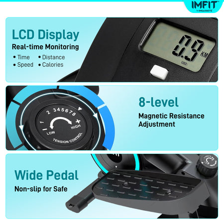 Transform your fitness routine with our IMFIT under-desk elliptical trainer, designed to support up to 350 pounds for maximum stability and safety. Enjoy quiet workouts at under 20dB, while customizing your intensity with 8 magnetic resistance levels. Its low-impact design makes it perfect for rehabilitation, and being lightweight and fully assembled allows for easy movement and storage in small spaces. The digital display tracks your time, speed, distance, and calories burned, promoting improved cardiovascular health and effective weight management, ideal for busy lifestyles.