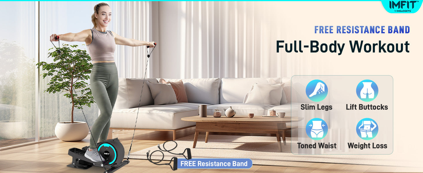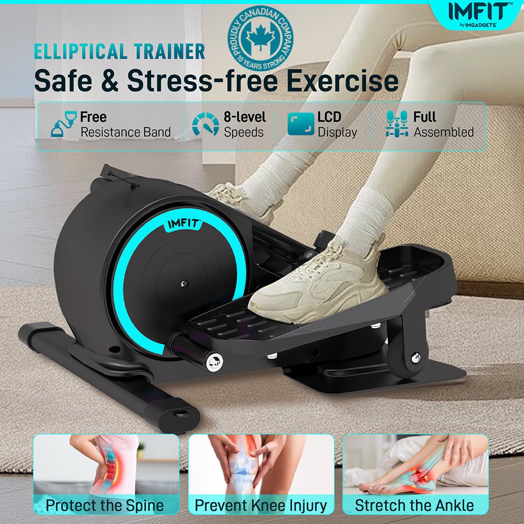 IMFIT Elliptical Trainer with free resistance band | 350 lb Weight Capacity | Ultra-Quiet (20dB) | 8 Resistance Levels | Low-Impact Exercise | Portable & Lightweight | Space-Saving Design | Digital Display | Improved Cardiovascular Health