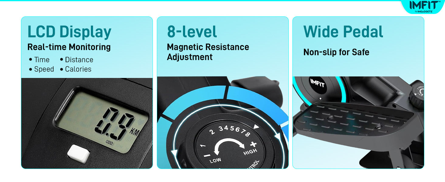 - Adjustable Resistance: The IMFIT elliptical offers 8 levels of magnetic resistance, making you easily customize your workout intensity to suit your fitness goals.
