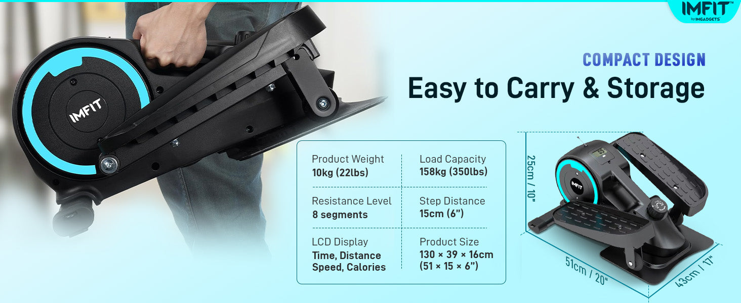 - High Weight Capacity: IMFIT elliptical trainer supports up to 350 pounds (158kg), providing stability and safety for many users.