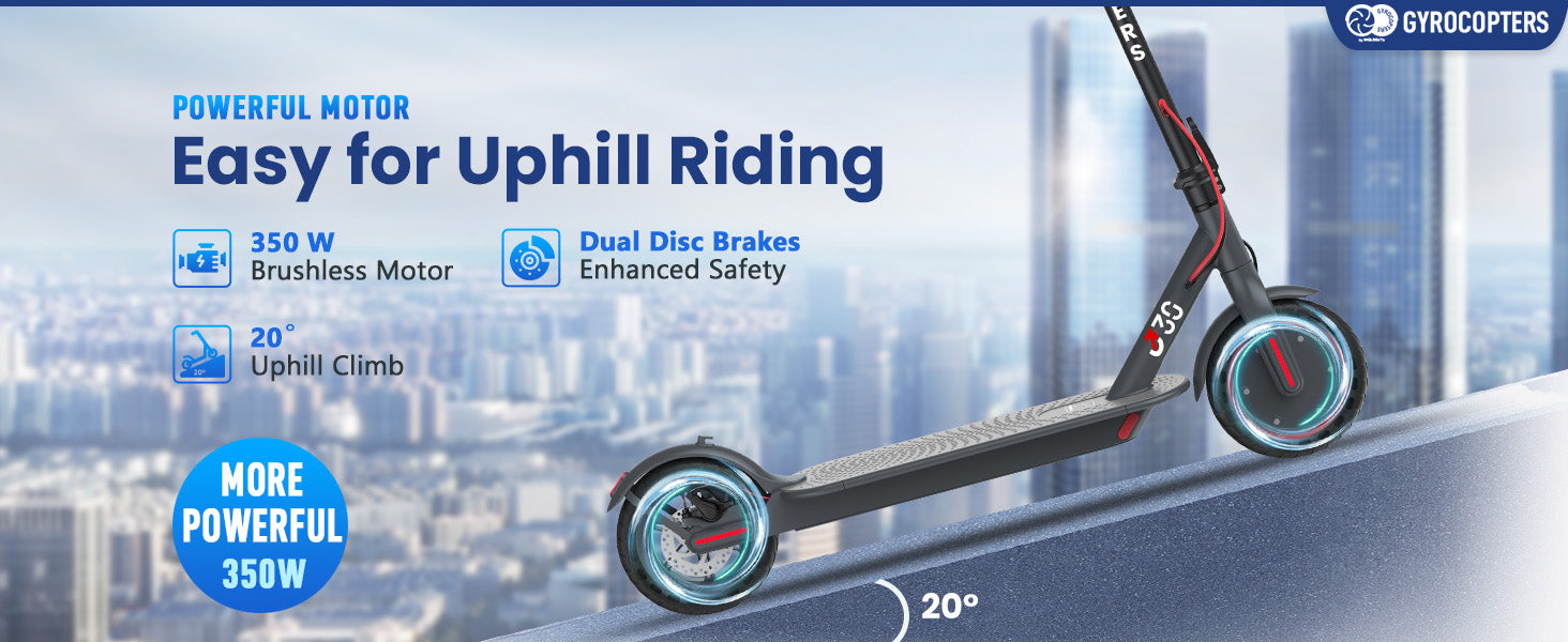 - Powerful Motor: The powerful 350W brushless motor ensures that the Gyrocopters J30 scooter can tackle all terrains with ease, providing a smooth, responsive ride.