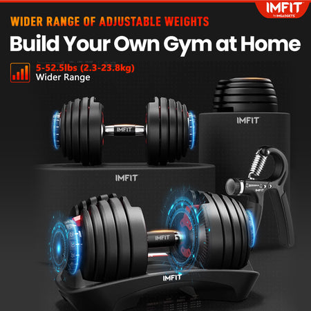 Wide Weight Range - The weight of these IMFIT adjustable dumbbells can be adjusted from 5 to 52.5 lbs, making them suitable for all family members to engage in effective workouts, depending on their needs and goals.