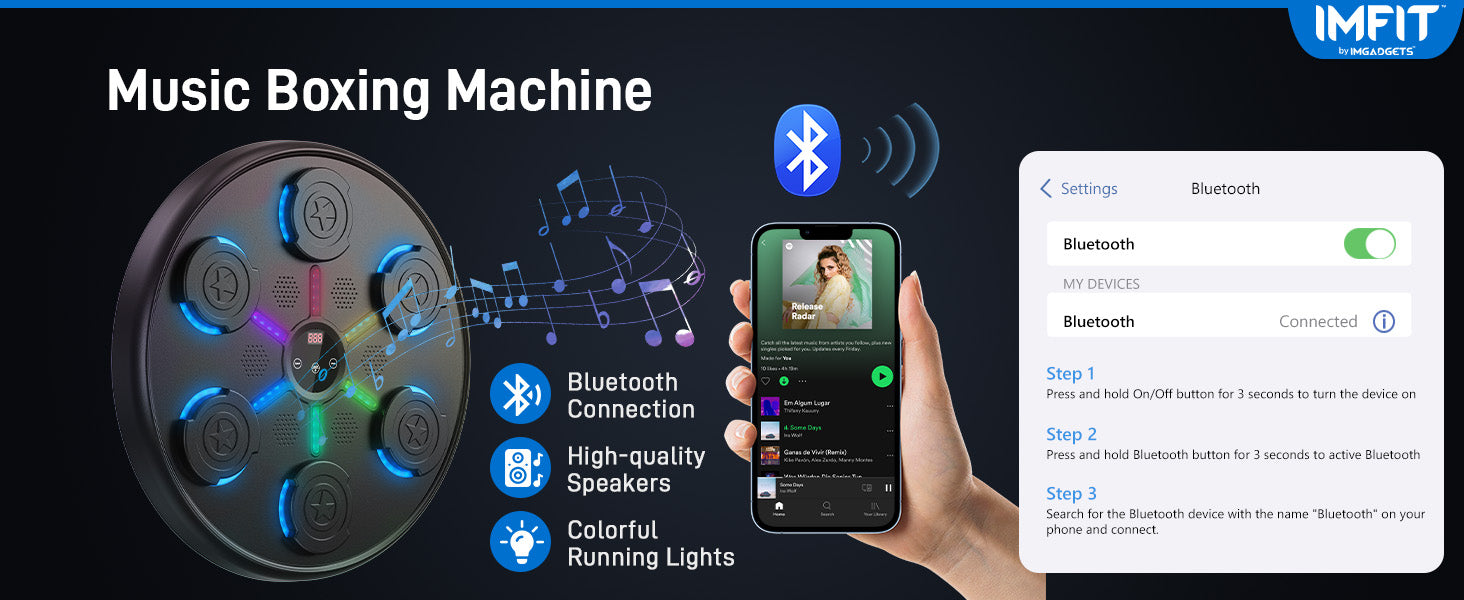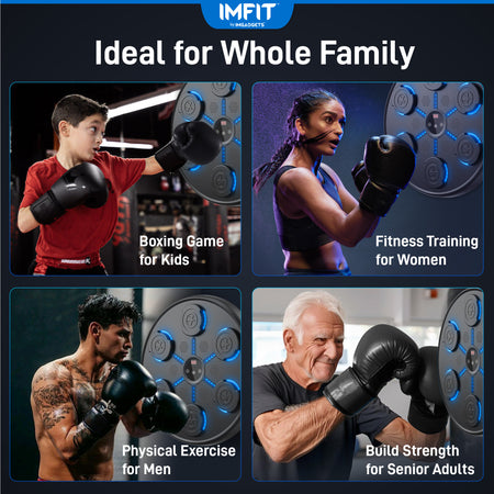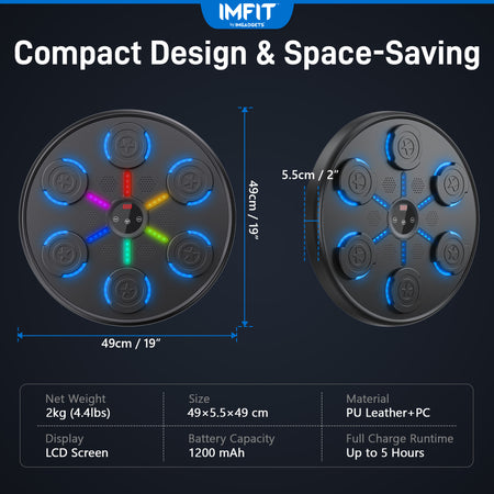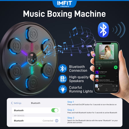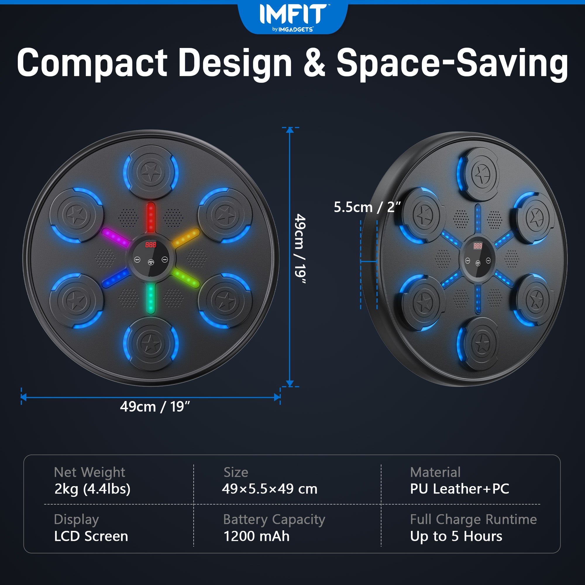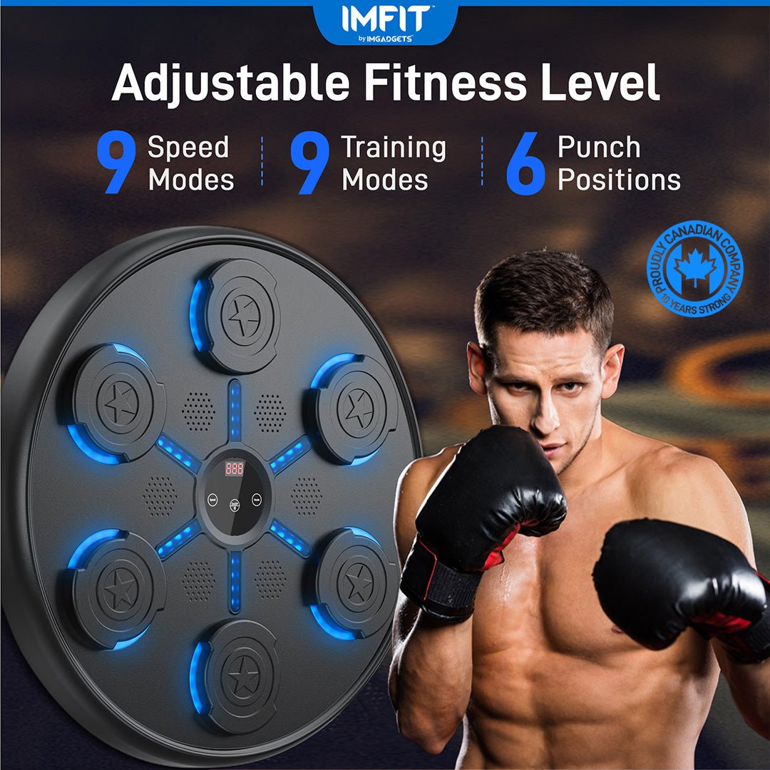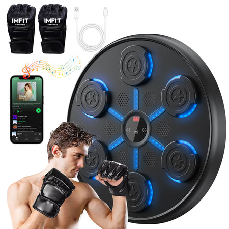 IMFIT Music Boxing Machine with gloves | Punching equipment for home, indoor, gym | 9 Speed & Training Modes | LED Lights | Bluetooth Music | Reflex & Dexterity Boost | Compact & Durable Design | Fun for All Ages | Colorful LED lights