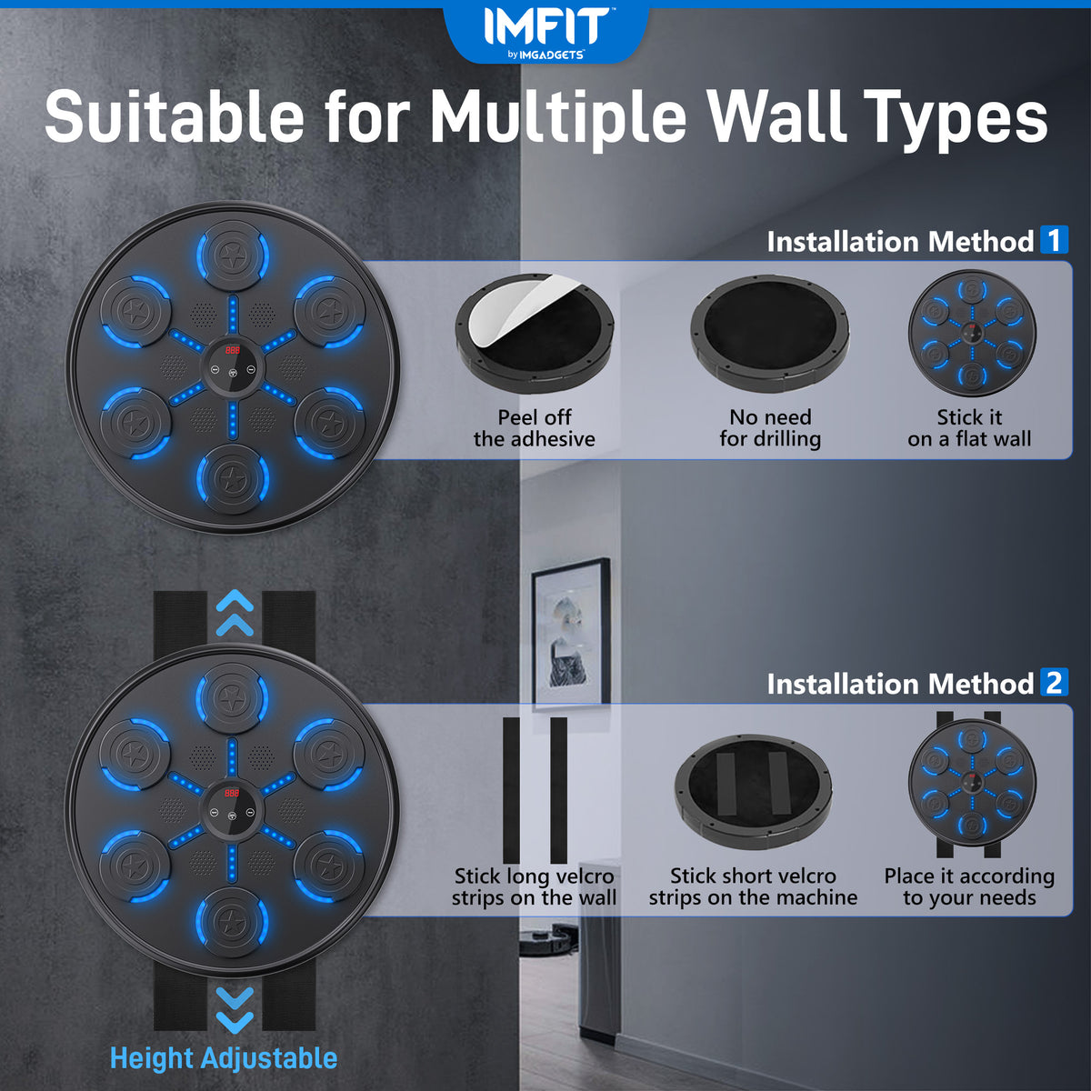 Compact and Convenient: This boxing machine with music is perfect for home gyms or playrooms. It mounts easily on any wall, saving space while providing a reliable workout station.
