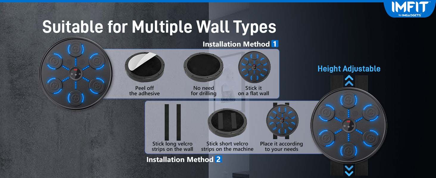Easy Installation: Includes both peel-off adhesive strips and Velcro strips, providing two convenient methods for securely mounting the boxing machine on any wall without the need for drilling or complex setup.