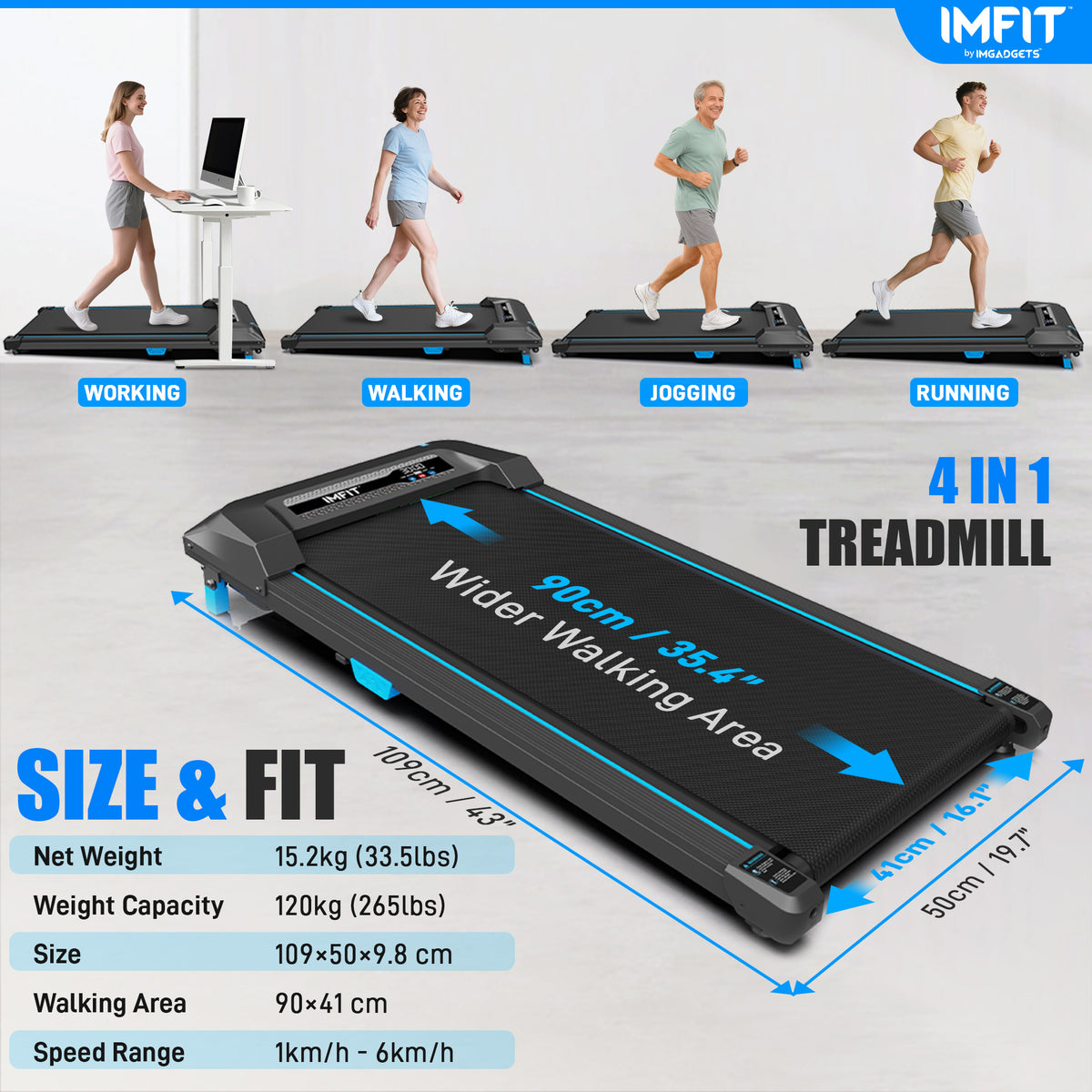 Elevate your daily routine with the IMFIT Walking Pad lite Treadmill - a sleek, modern, and ultra-convenient solution for staying active while working, relaxing, or managing a busy home life. Perfect for small spaces, home gyms, and offices, this folding treadmill delivers powerful performance in a space-saving design. Whether you're chasing daily steps at your desk or looking for a compact cardio companion, the IMFIT Walking Pad lite is the perfect fit.