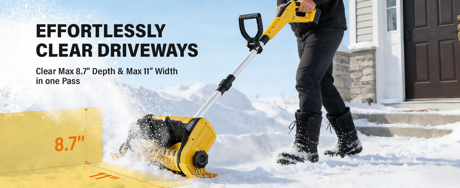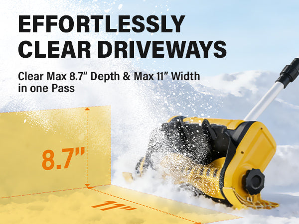 - Wide & Deep Snow Clearing: Designed for efficient snow removal, it offers a max clearing width of 11" and a max clearing depth of 8.7", so you can clear larger areas with fewer passes.