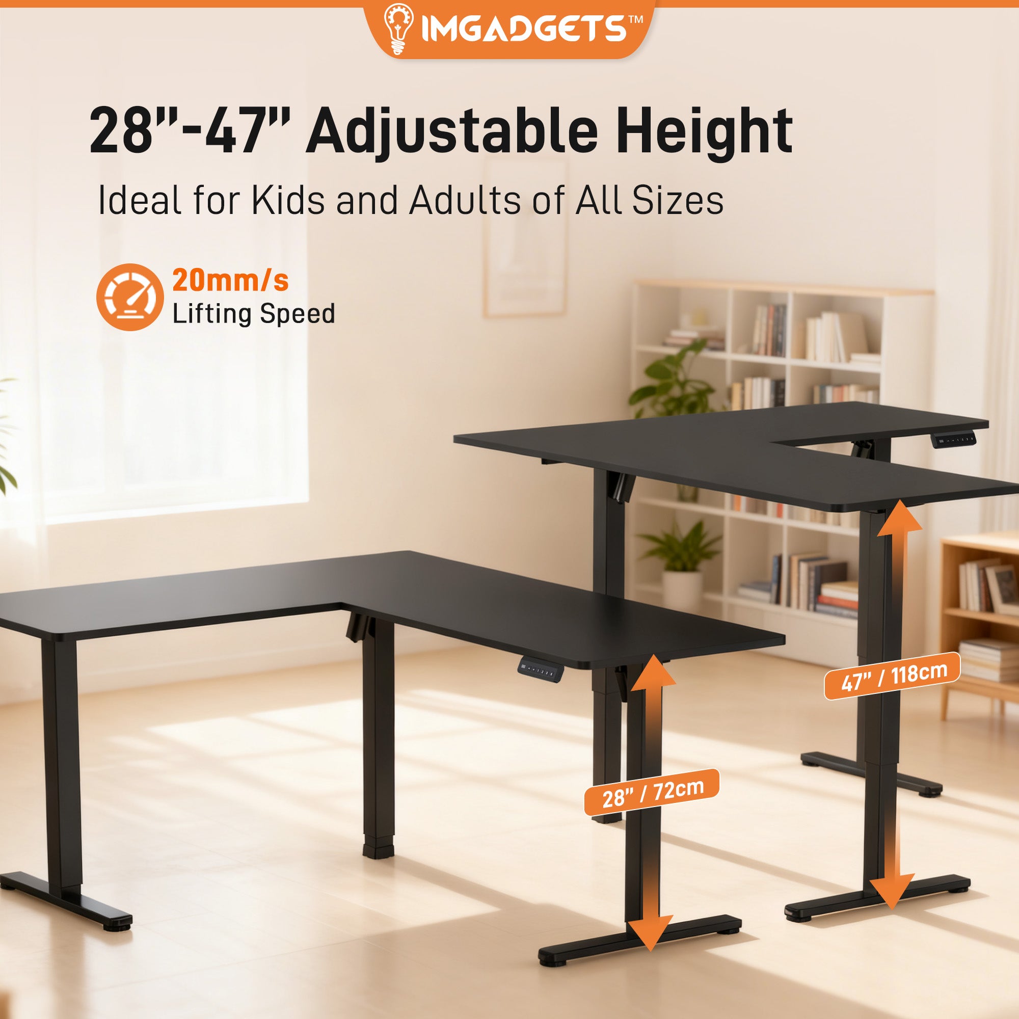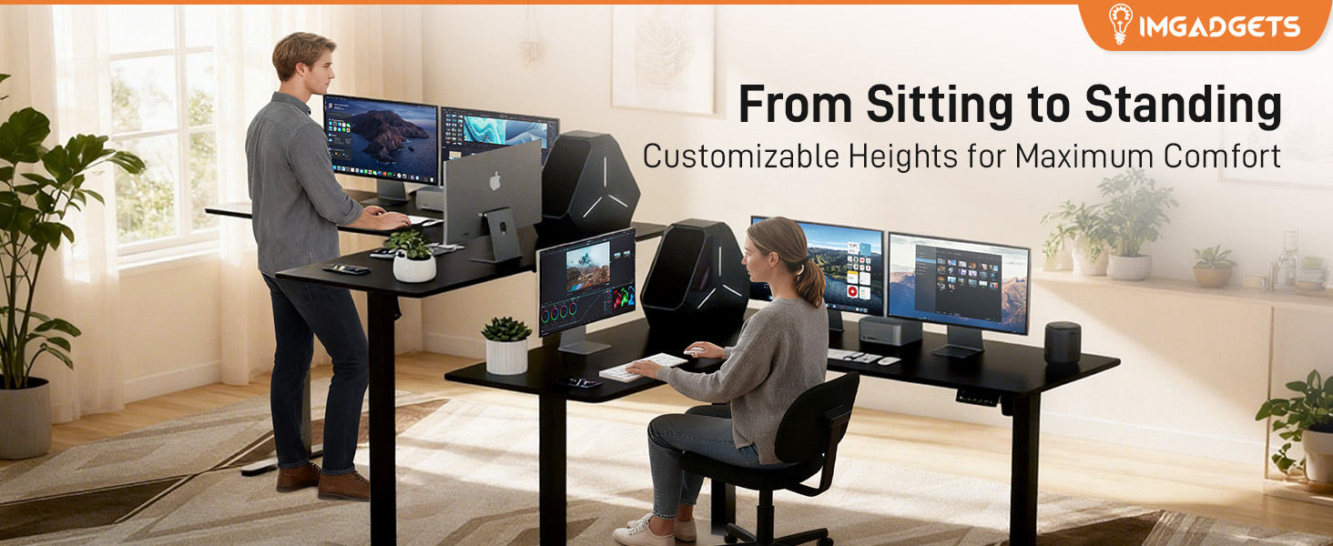 Optimize your productivity with the IMGadgets L-Shaped Electric Standing Desk, a premium adjustable sit-stand desk engineered for comfort, flexibility, and durability. Whether you’re working from home, gaming, or setting up a full ergonomic workspace, this sit-stand desk delivers the performance you need.