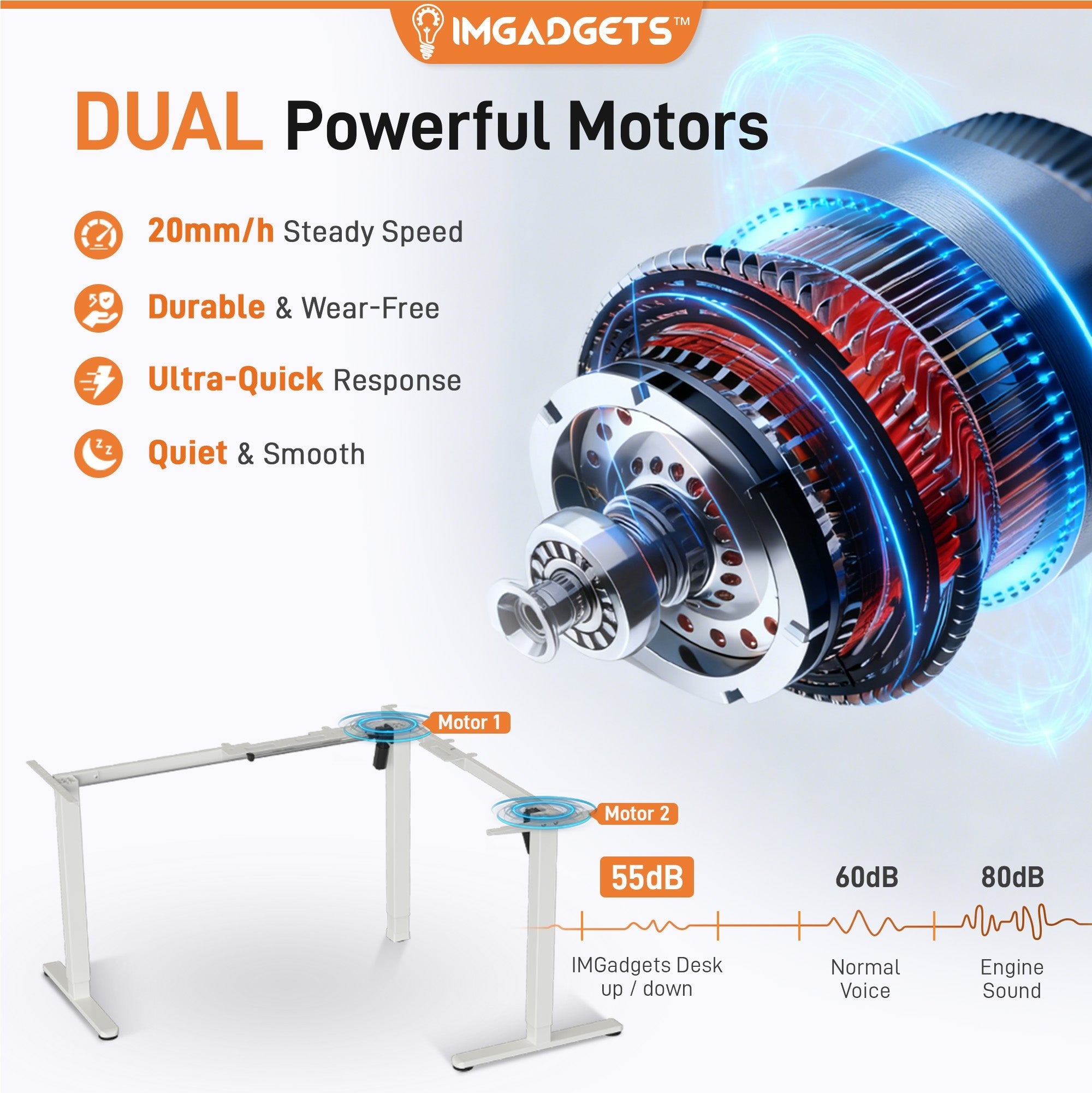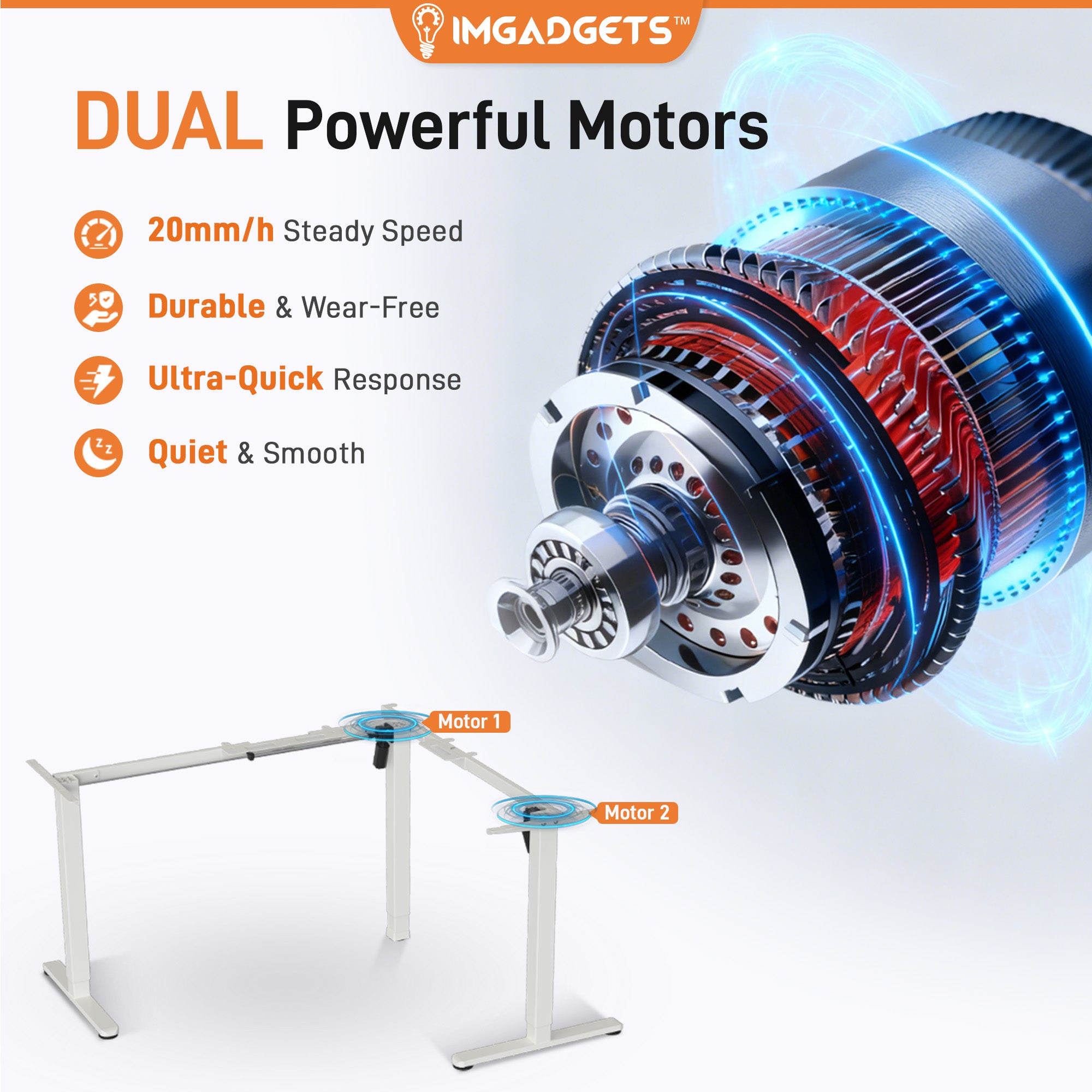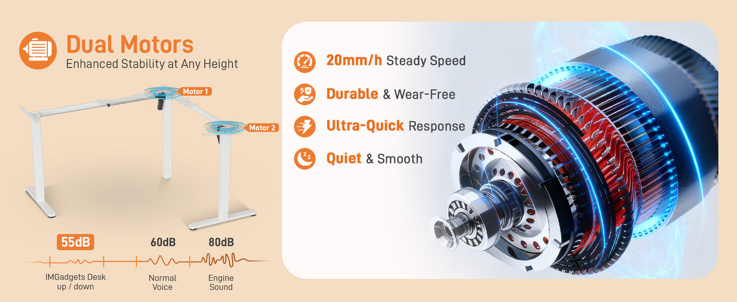- Quiet, Smooth, Wear-Free Operation: Dual motors deliver powerful, reliable motion at a steady 20mm/s speed. The ultra-quiet operation keeps your workspace calm and distraction-free.