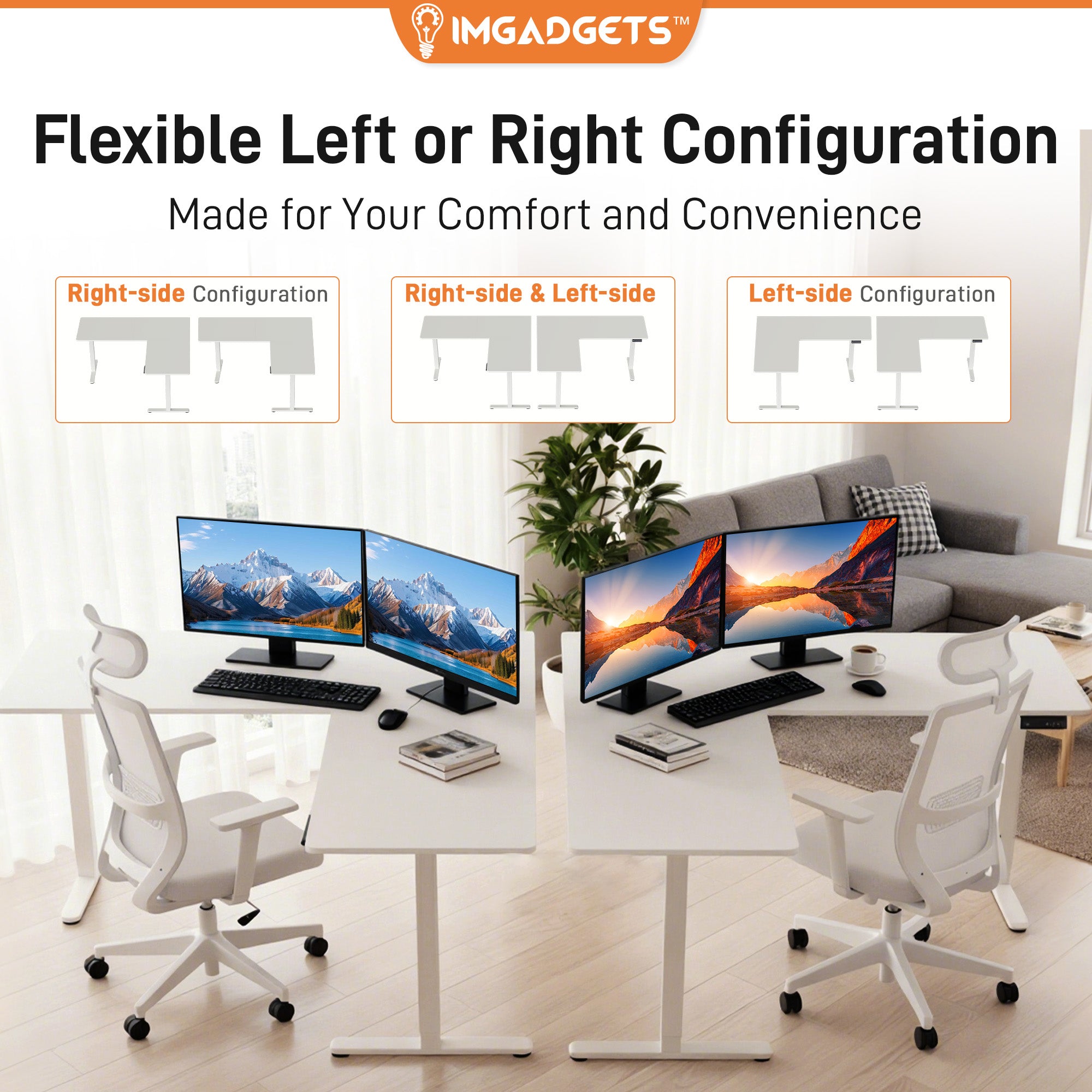 - Flexible Left or Right Configuration: Configure the IMGadgets desk in left-hand or right-hand L shape to match the room layout and maximize efficiency. Perfect for tight spaces, corners, or flexible home office designs.