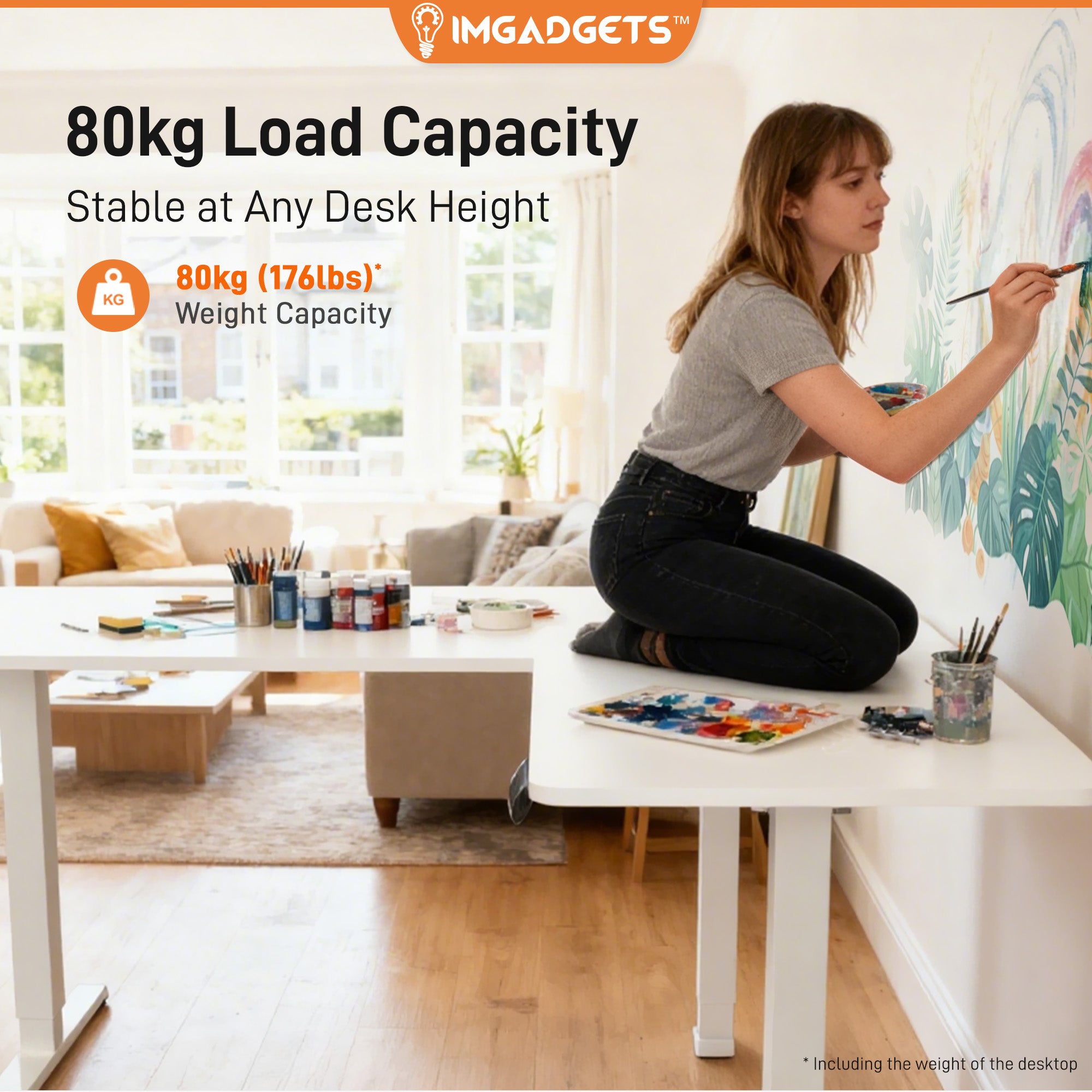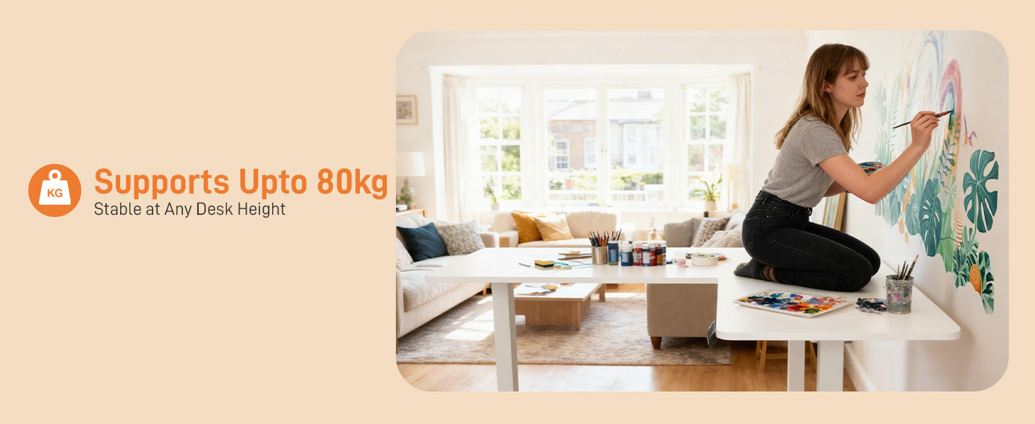 - Strong Load Capacity and Stability: The reinforced steel frame and thickened desk provide rock-solid stability at any height. With a 176 lbs (80kg) load capacity and floor-leveling feet, your setup remains secure, balanced, and wobble-free.