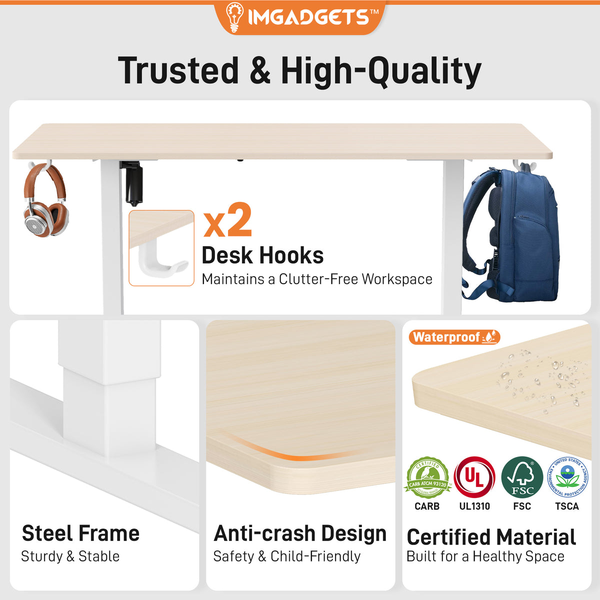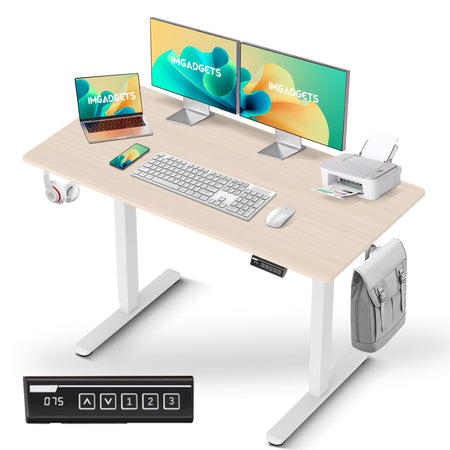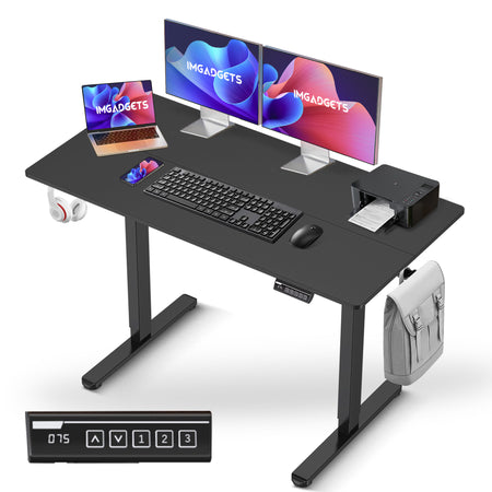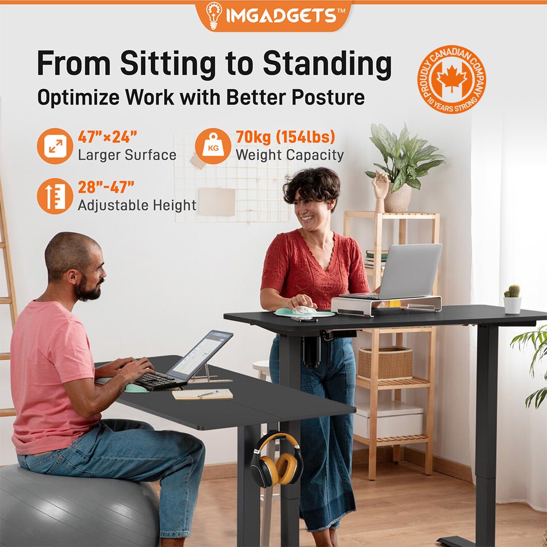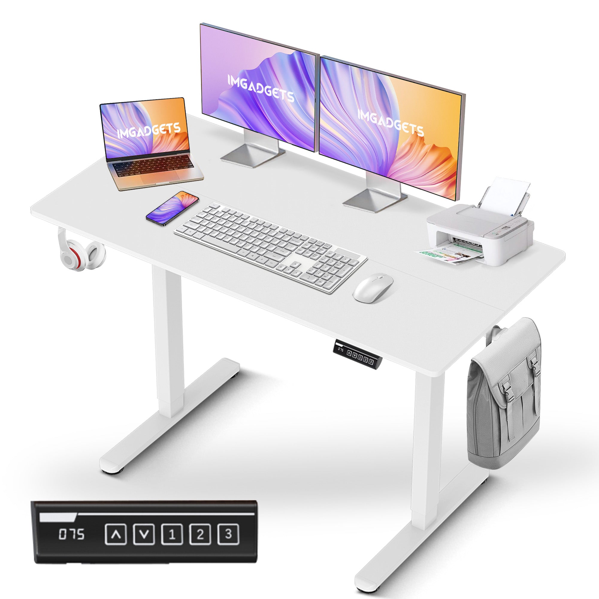 IMGadgets Standing Electric Adjustable Desk | 47'' x 24'' Large Workspace with 2 hooks | Ergonomic Sit-Stand Desk | 3-Memory Settings | Scratch-Resistant & Waterproof | Quiet Operation <55dB | Height Adjustable Desk for Work and Home