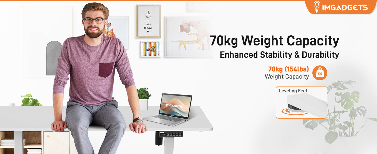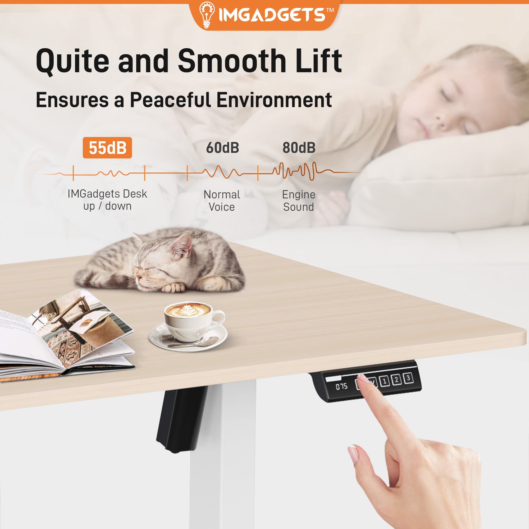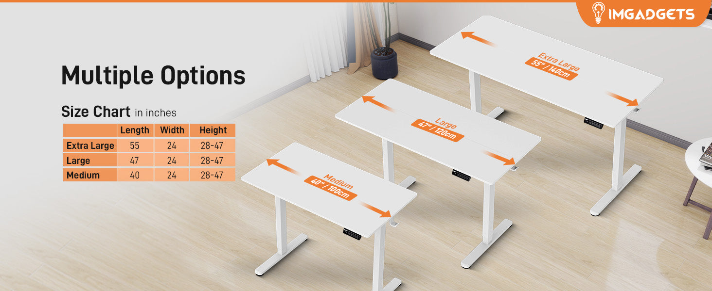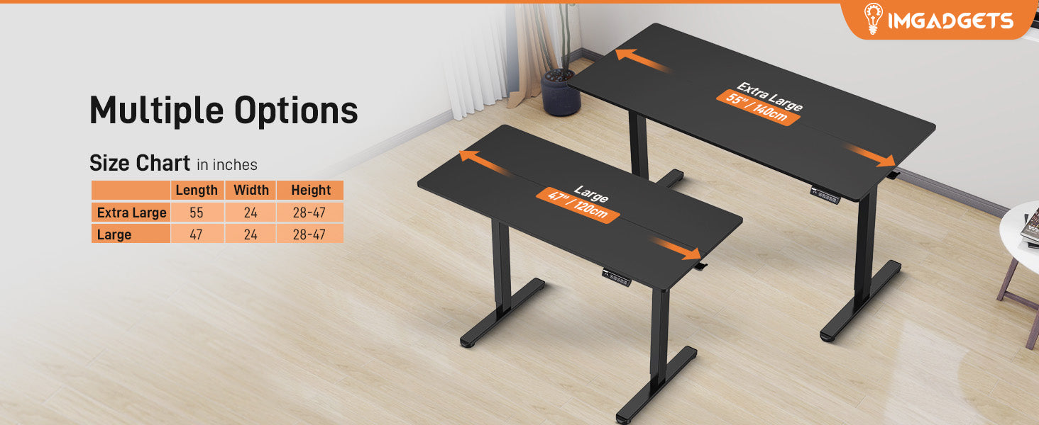 Elevate your workspace with the IMGadgets Electric Standing Desk, a versatile and feature-rich solution for home offices and professional setups. This sit-stand desk offers smooth electric height adjustments from 28" to 47", allowing you to seamlessly switch between sitting and standing. With a built-in 3 memory settings, you can save your favorite height settings for ultimate convenience. The anti-crash design ensures safe height adjustments, preventing damage to objects or the desk itself.