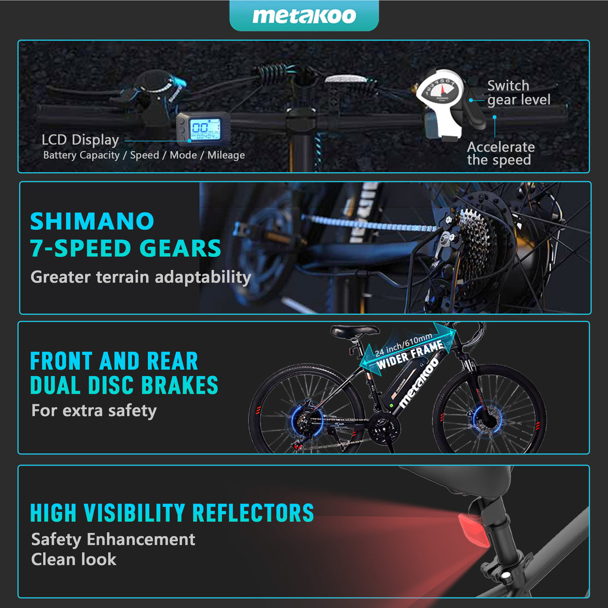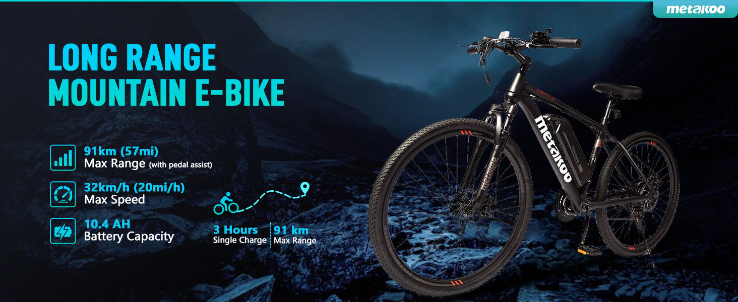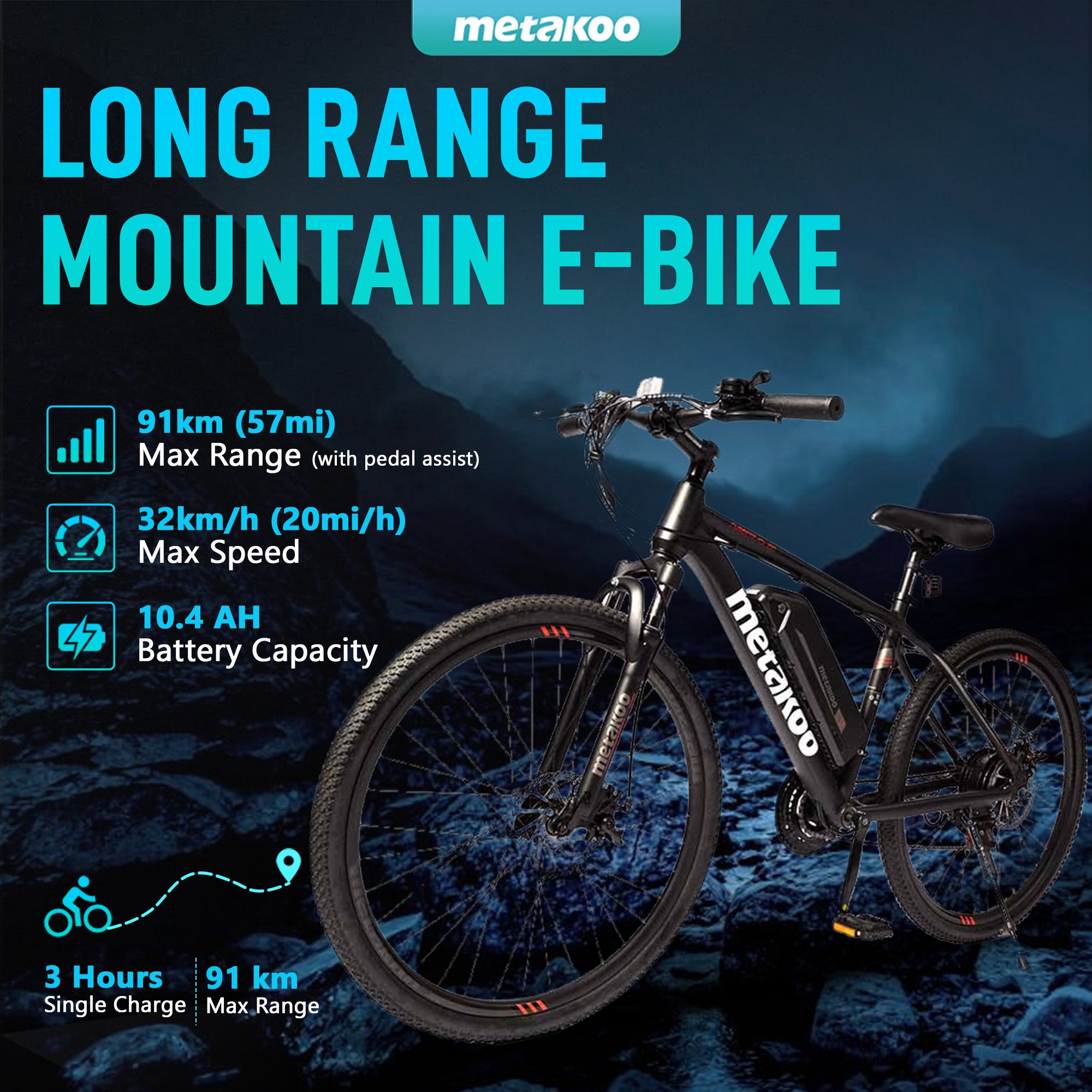 Re-certified METAKOO Cybertrack 100 Electric Mountain Bike l 26” Mountain Tires | Shimano Professional Speed l 350W Motor l Speed up to 32km |Range up to 91 km |Removable Battery