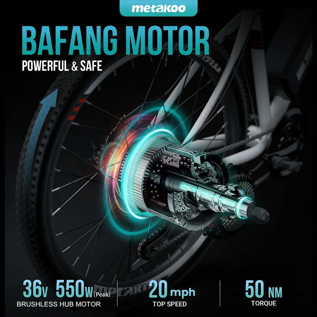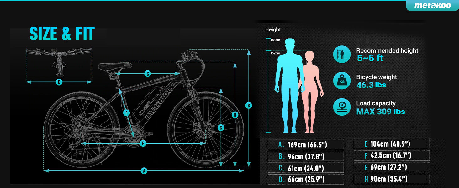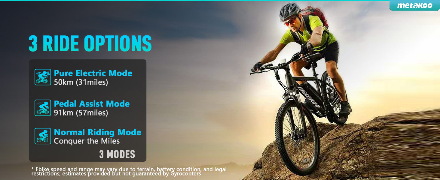 Re-certified METAKOO Cybertrack 100 Electric Mountain Bike l 26” Mountain Tires | Shimano Professional Speed l 350W Motor l Speed up to 32km |Range up to 91 km |Removable Battery