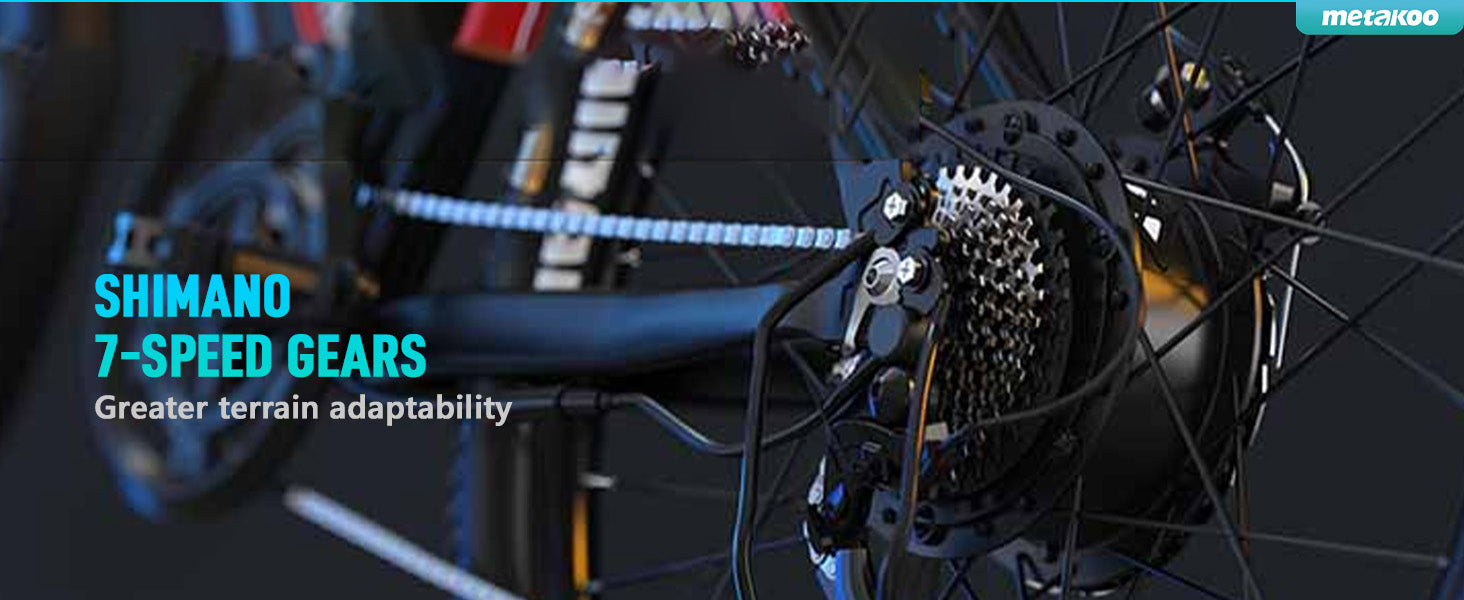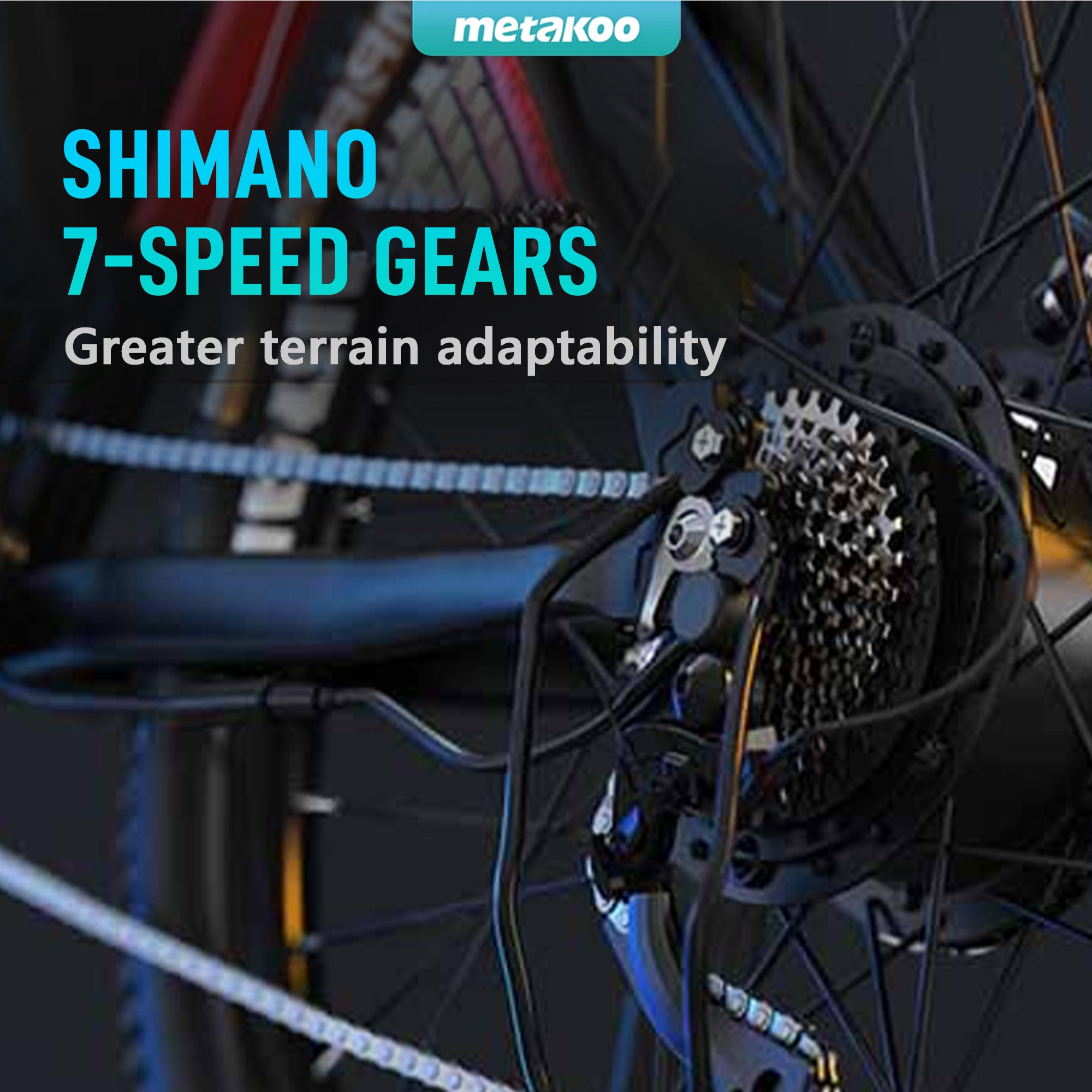 • Shimano Gear: With Cybertrack 100 mountain e-bike, experience effortless navigation across any terrain with unparalleled efficiency. Whether you ride without power assistance, rest assured that you will always have the appropriate gear to tackle the challenge effortlessly with this electric bike.